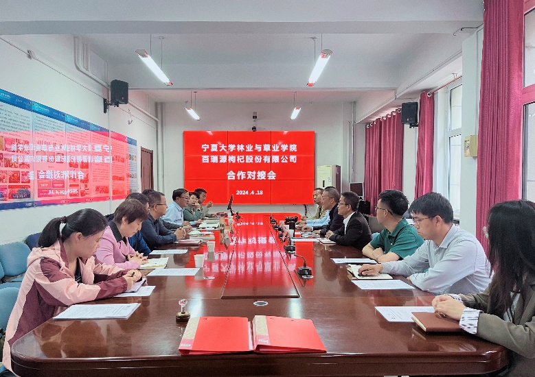 与百瑞源枸杞股份有限公司合作对接会在德晖楼103会议室举行。此次会议旨在通过双方的合作,共同推动枸杞产业的科研创新和人才培养,实现产学研的深度融合。百瑞源枸杞股份有限公司副总经理郝万亮、副总监胡涛、红寺堡基地经理马涛,以及绅士漫画