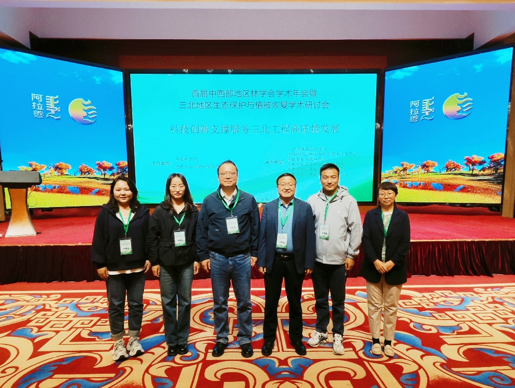 为深入学习贯彻习近平总书记在加强荒漠化综合防治和推进“三北”等重点生态工程建设座谈会上重要讲话精神,以及国家林业和草原局关于《关于全面推进三北工程科学绿化的实施意见》,强化三北工程攻坚战技术支撑,促进中西部地区林草科技交流与合作,中国林学会于2024年9月24日在内蒙古阿拉善左旗举办“首届中西部地区林学会学术年会暨三北地区生态保护与植被恢复学术研讨会”,来自国内林业科学及相关领域专家学者共150余人参加。学院院长马红彬、副院长田佳、教授张萍及青年教师郑翔、何莹莹、海旭莹等人受邀参加了研讨会。会上,院长马红彬教授作了题为“乡土优良牧草资源开发及在宁夏退化荒漠草原修复中的应用”的报告。