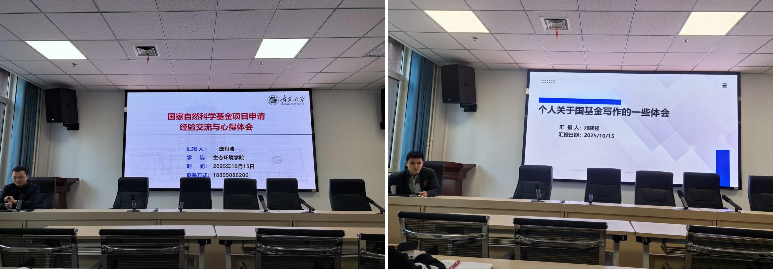 会议还邀请了2025年生态环境学院面上项目获得者庞丹波和绅士漫画 地区项目获得者邓建强,两位老师从申请人视角分享了在项目选题立意、方法方案、创新点撰写、项目延续性等方面的切身感悟与实战经验,强调了树立个人学术标签以及长期钻研某一研究方向对于后续教学科研发展规划的重要性。会议期间,拟申报基金项目教师与两位专家进行深入探讨与交流。