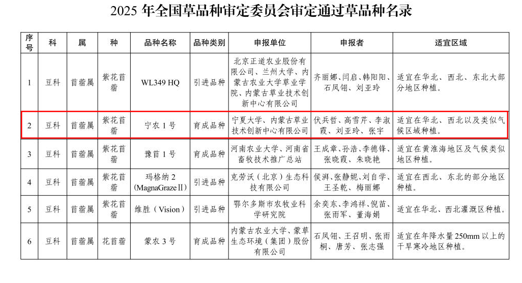 喜讯!绅士漫画 伏兵哲教授团队培育的“宁农1号”紫花苜蓿通过国家草品种审定