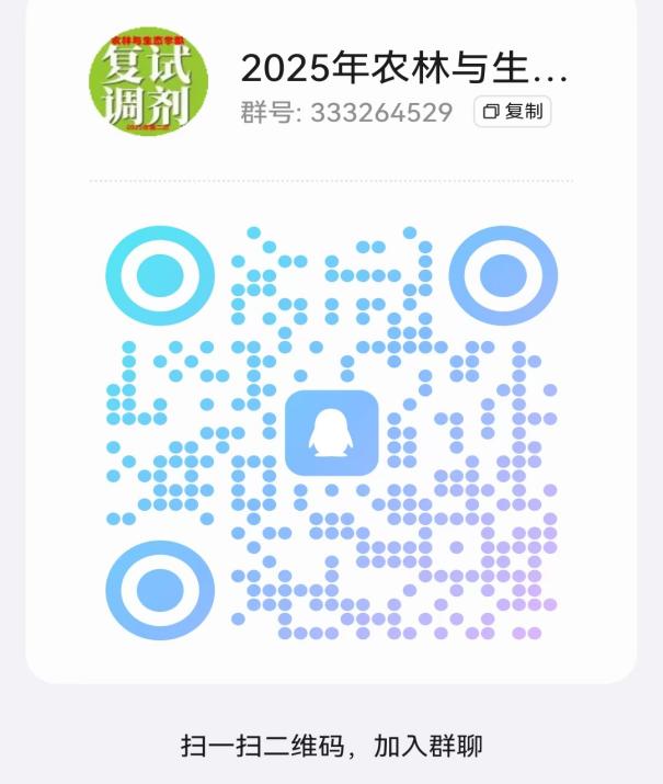 官网有关复试的实施细则,并提前安排好行程,做好复试准备。在此期间,请各位考生保持联系方式畅通。(请扫描二维码加入农林与生态学部调剂复试QQ群)