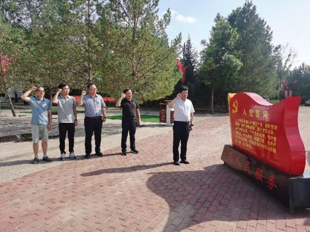 在红色圣地,参观学习的党员在鲜红的党旗下重温入党誓词,感悟初心使命,坚定理想信念。
