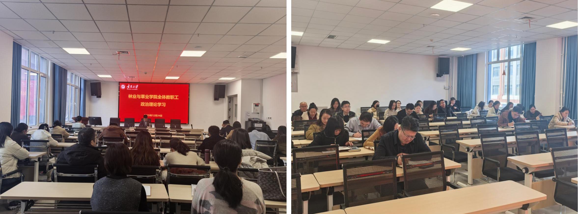 2025年12月24日,绅士漫画 于新农科大楼223会议室召开全体教职工政治理论学习研讨会。全体教职工参加学习,学院党总支书记贺海明主持会议。